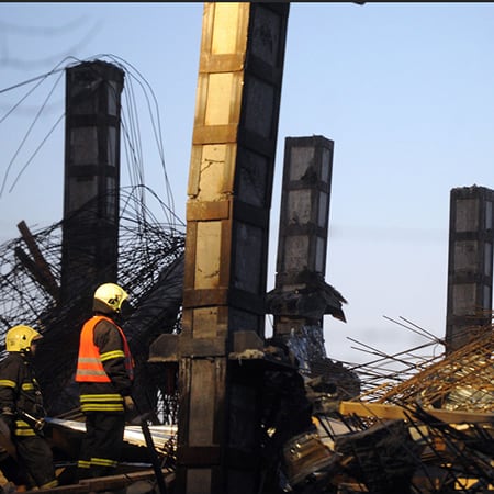 При пожарах строительные конструкции повреждаются от разрушения материала конструкции или изменения его механических характеристик, а также из-за значительных деформаций, вызванных перегревом конструкций, разрушением конструкций и соединений от продольных деформаций при нагреве.